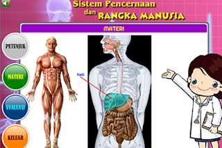 Pembuatan media pembelajaran interaktif tentang sistem pencernaan dan rangka manusia bertujuan untuk mempermudah pemahaman siswa terhadap konsep anatomi tubuh. Media ini dirancang menggunakan animasi 3D dan ilustrasi interaktif yang memperlihatkan struktur organ pencernaan seperti mulut, lambung, usus, hingga mekanisme kerja tulang rangka. Dengan simulasi animasi, siswa dapat melihat bagaimana makanan dicerna dan bagaimana rangka mendukung tubuh. Selain itu, fitur suara dan teks narasi membantu menjelaskan proses biologis dengan bahasa yang sederhana dan menarik.